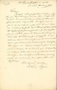 .« J’accepte votre proposition d’écrire l’histoire de Karl Marx qui sera en même temps celle du parti communiste allemand d’avant 1850 & du parti socialiste d’après 1852. Envisagée sous ce point de vue, la biographie d’un homme deviendra l’histoire du parti dont Marx est sans contredit la plus haute personnification, & sera du plus grand intérêt pour la démocratie française. C’est cette considération qui m’engagera à me distraire de mes travaux pour me consacrer à cette œuvre qui demande des recherches & du temps pour être digne du sujet ; mais je ne puis consentir à m’occuper de ce travail que lorsque, dans une seconde lettre, vous m’aurez dit vos conditions que, sans doute par inadvertance, vous avez négligé de mentionner dans votre lettre du 14 février »…