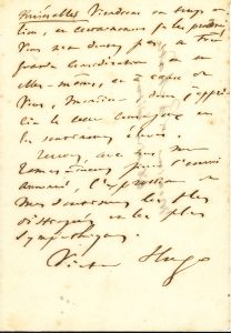 remettre le 1er volume à notre excellent ami commun M. Paul Meurice qui me le fera parvenir. Je vous écrirai très volontiers quelques lignes sur Jersey, car le sujet, ce me semble, ne comporte guère autre chose. Je verrai, du reste, par les autres articles et en feuilletant l’ouvrage même, si l’on peut s’étendre un peu plus et aller jusqu’à une colonne. Jersey n’est qu’un poème microscopique. – Vos amateurs pour Les Misérables viendront en temps et lieu, et certainement je les prendrai, vous n’en doutez pas, en très grande considération, et en elles-mêmes, et à cause de vous […] dont j’apprécie le cœur courageux et les sentiments élevés »…