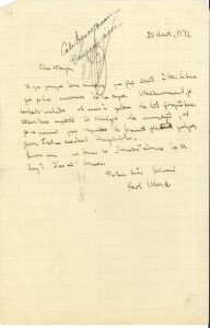 copie. Malheureusement, je tombais malade et avais à garder le lit jusqu’à hier. J’étais donc empêché de corriger le manuscrit, et je ne pouvais pas reprendre le travail qu’après quelques jours. C’est un incident désagréable. Pouvez-vous me donner la “dernière” adresse de M. Roy ? J’en ai besoin »…
