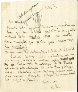 tentative de rétablissement de la monarchie avec le comte de Chambord. .« Dans votre lettre que je viens de recevoir aujourd’hui aussi bien que dans la lettre précédente vous parlez seulement de la sixième série, mais veuillez bien remarquer que je n’ai pas encore reçu la cinquième ! J’ai écrit pour avoir des notes biographiques de Bebel et Liebknecht [cofondateurs du Sozialdemokratischer Arbeiterparti, le Parti social-démocrate des travailleurs]. Les chances du roy [comte de Chambord] sont plus que douteuses ; mais même s’il revenait, la France ne serait pas perdue. C’est du reste la politique de M. Thiers qui a amené cette catastrophe et, si la France y échappe, c’est grâce à la tactique absurde des hommes de l’ordre moral et aux hésitations et scrupules de l’enfant du miracle, dit “l’enfant de l’Europe” »…