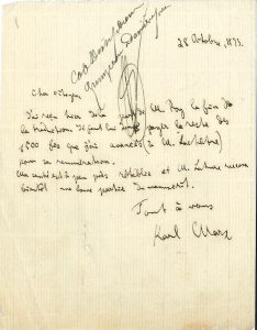 Karl MARX. L.A.S., [Londres] 28 octobre 1873, au « Cher citoyen » [Juste Vernouillet ?] ; 1 page in-12 (cote d’inventaire notarial, infimes trous de liassage, bas de la lettre légèrement effrangé) ; en français.. Fin de la traduction...