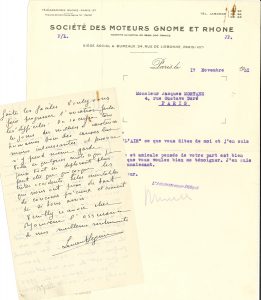 Seguin, deviendra Gnome & Rhône). L.A.S., [1911], à Jacques Mortane ; 2 pages in-12 (petite trace de rouille).. À propos du Circuit Européen… « nos concurrents de tous les pays connaissent fort bien tous les plans de nos aéroplanes, appareils et moteurs, et ça ne sera certes pas la vue de nos machines qui pourra leur apprendre quelques choses [...] Pour les épreuves de 1911 voulez-vous éviter des accidents, faites-les faciles. Voulez-vous faire progresser l’aviation faites-les difficiles. On sacrifie tous les jours des milliers d’existences humaines pour des causes bien moins intéressantes et personne n’y prend même garde ». Et il déplore « les tristes accidents hélas inévitables qui nous ont privés de tant de concours précieux et souvent de si bons amis »... [Le Circuit Européen totalisait 1600 km, en 7 étapes de Paris à Paris en passant par Liège, Spa, Utrecht, Bruxelles, Roubaix, Calais et Londres. Les avions décollèrent le 18 juin 1911. Sur 41 équipages, 9 seulement terminèrent la course. Le vainqueur fut le français Jean Conneau dit André Beaumont (1880-1937) en 58 h 38, sur Blériot XI (moteur Gnome !), devant Roland Garros.. On joint une L.S. de Paul-Louis Weiller (1893-1993) à Jacques Mortane le remerciant d’avoir parlé de lui dans L’Air (17 novembre 1931, en-tête Société des Moteurs Gnome et Rhône).