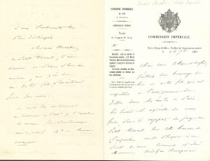Michel CHEVALIER (1806-1879) économiste. 4 L.A.S., 1836 et 1867, à Alexandre Brongniart de l’Institut, puis à Adolphe Brongniart ; 1 page et quart in-4, et 5 pages et demie in-8, une à en-tête de l’Exposition Universelle de 1867 à Paris,...