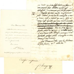 Savants. 3 lettres ou pièces autographes, dont 2 signées.. François Arago (état des postes pour une mission à Metz), Léon Foucault (« Les anglais ont tout inventé sans doute mais les français aussi »), André Méchain (1787, minute non...