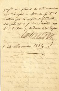 Louis-Antoine de Bourbon, duc d’ANGOULÊME (1775-1844) fils de Charles X, il combattit dans l’Émigration et aux Cent-Jours ; il épousa Madame Royale. L.A.S., 14 novembre 1822, [à Joséphine de Gontaut] ; 1 page et demie in-8.. Réponse à...