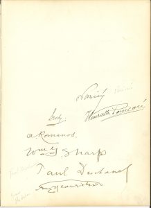 personnalités militaires, politiques, littéraires, musicales ou artistiques : Léon Bonnat, Paul Bourget, Léon Bourgeois, Gal Georges Brissaud (remerciant les Rothschild « toujours prêts à secourir les infortunes de nos poilus »), Paul Deschanel, Edward VIII duc de Windsor, vice-amiral Émile Guépratte, Gabriel Hanotaux, Henri-Robert, maréchal Joseph Joffre, Lucien Lévy-Dhurmer, Gal Charles Mangin, Gal Charles Moinier gouverneur de Paris, Raymond et Henriette Poincaré, Jean Richepin, Camille Saint-Saëns (avec accord musical), Albert Salle, René Viviani, Lazare et Paul-Louis Weiller, etc…