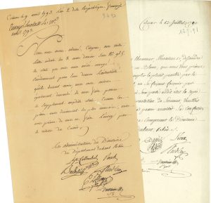 ALSACE. 14 lettres ou pièces.. Jean-Justin Thiébaut Bacher, Louis Bautain, François-Pierre Dernois, Charles et Philippe-Antoine Grad, baron de Heeckeren, baron de Kentzinger, Victor Rossée (3), Frédéric de Wurmser, les membres du Directoire...