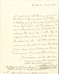 le général Dupas à Hambourg pour y commander la seconde ligne de son corps d’armée. « Je l’ai prévenu qu’il auroit à vous seconder, pour l’exécution des ordres que vous recevez de S.M. & je suis certain que vous n’aurez qu’à vous louer de vos relations avec lui. Les Villes anséatiques continuant à faire partie de mon Commandement, j’aurai souvent encore l’occasion de vous donner de mes nouvelles »… Il ajoute de sa main des compliments pour la famille Bourrienne.