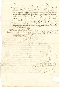 CHARLES IX (1550-1574) Roi de France. L.S., Ennet (?) 3 octobre 1566, à M. de Fourquevaulx, son ambassadeur en Espagne ; contresignée par Robertet ; 2 pages in-fol., adresse avec traces de sceau cire rouge (petite déchirure par bris de cachet...