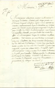 Castries, pour le faire agréer comme aspirant au consulat. « Tout annonce que nous touchons au moment de la paix. L’Angleterre doit dit-on reconnoître l’indépendance des 13 États-Unis de l’Amérique », et alors « il sera créé des consulats à Charles-Town New Yorck et peut-etre ailleurs encore »... Le comte d’Artois ajoute de sa main : « Je recommande instamment ce mémoire à Mr de Castries ».