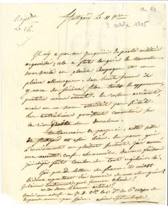 Pierre Dupont de l’Étang (1765-1840) général, comte, ministre de la Guerre au retour de Louis XVIII. L.A., Stuttgart 11 vendémiaire [XIV] (3 octobre 1805), à son ami Blanchon, ordonnateur à Turin ; 1 page in-4, adresse avec marque postale...