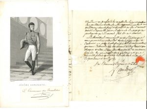 Empire. 6 L.S. ou P.S.. François Andreossy (à Suchet, Boulogne 1804), Jérôme Bonaparte (signature découpée), Jean-Baptiste Droüet (Bordeaux 1808), Maurice-Étienne comte Gérard (1814, à Michaud), Rémy-Joseph-Isidore Exelmans (1814),...