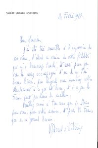 République, Assemblée Nationale, Région d’Auvergne.. Lettres de vœux et de remerciements pour l’envoi d’ouvrages : les Contes de La Fontaine (1976), l’Histoire des Français vus par eux-mêmes (1983), les Contes de Voltaire (1985), etc. Il est touché par « ces très beaux livres par lesquels vous montrez votre attachement à ce qui est beau et à ce que la France peut produire de meilleur » (14 février 1982). En 1985, alors que L’Ormeraie cesse son activité d’éditeur, il le complimente : « Vous avez servi aussi notre culture et notre civilisation bien maltraitées aujourd’hui, dans ce qu’elles ont de meilleur, et qui leur a valu leur réputation mondiale, c’est-à-dire leur expression écrite ». Etc. On joint une L.S. de sa secrétaire.