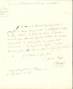 Jean LANNES. L.S., Q.G. de Braunau 8 brumaire XIV (30 octobre 1805), au général Suchet ; 1 page in-4.. Suchet se rendra sur le champ « à Cherding, où il recevra des ordres ultérieurs. Il suivra la division des grenadiers commandée par...