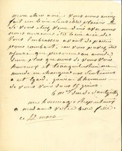 eux : « vous pouvez être assuré que personne au monde desire plus que nous de vous voir heureux et tranquil rien au monde ne changera nos sentimens a cet egard »…
