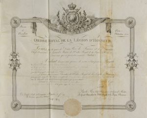 du corps de Monsieur (compagnie d’Escars). contresigné par le maréchal Gouvion-Saint-Cyr, ministre secrétaire d’État de la Guerre. Brevet de chevalier de la Légion d’honneur pour Louis Eutrope Pascal Faux, lieutenant à la Légion de Vaucluse, contresigné par le maréchal Macdonald, Grand Chancelier de la Légion d’honneur