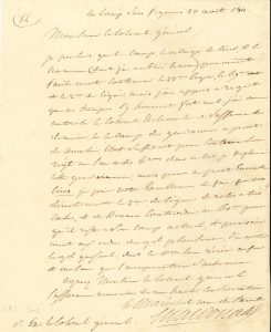 Alexandre MACDONALD. L.A.S., au camp sous Figueres 20 août 1811, au Colonel général [Alexandre Berthier] ; 1 page in-4.. « Je pensais que le camp, le village de Liers, et le hameau (dont j’ai oublié le nom) pouvoient facilement contenir...