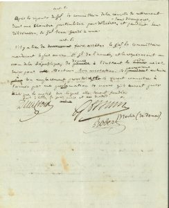 in-4.. Bel ensemble relatif à la trahison de Dumouriez.. 29 mars. « Vû la réponse du général Dumouriez en date de ce jour à la lettre par laquelle lui étoit notifié notre arrêté de ce mesme jour, qui le mande par-devant nous ; Nous membres de la Convention nationale, ses commissaires près l’armée de la Belgique et dans les départemens du Nord et du Pas de Calais, arrêtons que nous nous transporterons sur le champ à Tournai pour entendre le général Dumouriez »… Ont cosigné les autres commissaires : Jean-François Delacroix, Constant-Joseph-Étienne Gossuin, Lazare Carnot, Jean-Baptiste Treilhard, Gaspard-Jean-Joseph Lesage-Senault, et Michel Robert.. 31 mars. Arrêté en 6 articles pour assurer Lille « contre les entreprises des ennemis extérieurs et contre les manœuvres des contrerévolutionnaires de l’intérieur », les commissaires étant informés que Dumouriez a fait sa retraite hors de Tournai. « Art. 1. Les commissaires de la convon nale se rendront demain lundi 1er avril à St Amand, pour interroger le gal Dumouriez sur les inculpations dont il est l’objet. […] Art. 4. La proposition de destituer et faire arrêter le gal Dumouriez, est ajournée jusqu’après ses réponses. […] Art. 6. S’il y a lieu de faire arrêter le gal, les commissaires manderont le plus ancien Lt gl de l’armée, et le requéreront au nom de la République, de donner à l’instant les ordres nécessaires »…Ont aussi signé Delacroix, Gossuin et Robert.