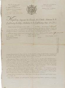 NAPOLÉON Ier. P.S. « NP », Palais de Saint-Cloud 10 avril 1813 ; contresignée par le ministre secrétaire d’État par interim Champagny duc de Cadore, le ministre des Manufactures et du Commerce Collin comte de Sussy, le ministre de la...