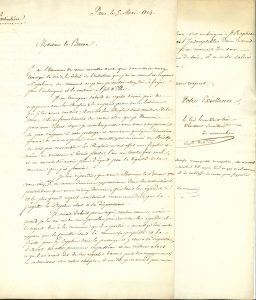 [Napoléon Ier]. Joseph-Saturnin, comte de Peytes de moncabrié (1741-1819) contre-amiral. L.S. comme capitaine de vaisseau avec post-scriptum a.s., Paris 5 mai 1814, [au baron Malouet, ministre de la Marine] ; 5 pages in-fol.. Intéressant...