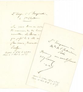 « La Reine a fait dire que passé le 3 elle ne pourrait plus venir ; devant aller en Prusse »... On joint une lettre-circulaire en facsimilé du Prince Napoléon (1967).