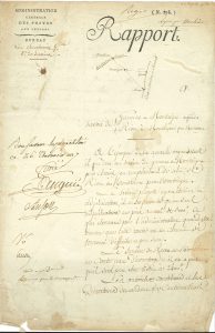 Postes. P.S. par 3 administrateurs, 26 thermidor VII (13 août 1799) ; 1 page et demie in-fol., en-tête Administration générale des Postes aux lettres (lég. mouill. et bord inf. abîmé).. Rapport préconisant le rétablissement du service...
