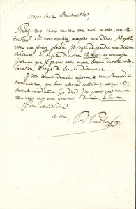 Pierre Joseph PROUDHON. L.A.S., [vers 1851-1852], à Marc-Lucien Boutteville ; 2/3 de page in-8.. À son collaborateur Boutteville à propos du projet d’une Histoire de la Démocratie moderne. . Il le prie de venir dîner avec lui : « Il...