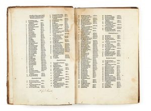 Complet de son index, l’ouvrage est orné d’une gravure sur bois à pleine page représentant un arbre de consanguinité, d’illustrations astronomiques ou encore d’un schéma de la Terre.