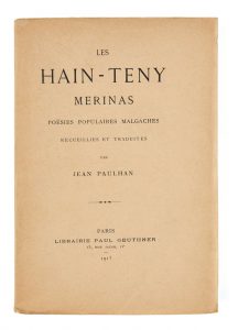 JEAN PAULHAN - 1884-1968 - Les Hain-teny merinas. Paris, Geuthner, 1913. In-8 broché.
