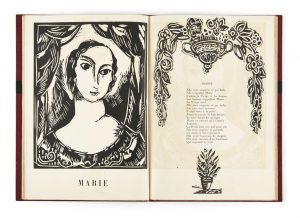 Édition originale des poèmes, mis en scène dans 19 bois à pleine page, gravés en noir.
