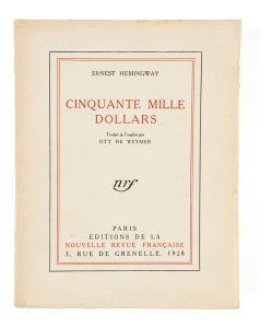 ERNEST HEMINGWAY - 1899-1961 - Cinquante mille dollars. Paris, N.R.F., 1928. In-8 broché.