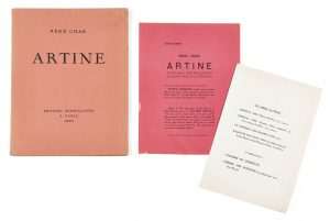 Un des 4 exemplaires HC sur Ingres rose monogrammé par René Char à la justification, (H.C. ¼, 3e papier).