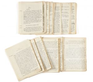 La version, manifestement incomplète, que nous présentons ici, sous la forme d’une copie carbone de dactylographie, raturée et corrigée par l’auteur à de nombreuses reprises au crayon noir ou à l’encre, avec une pagination discontinue et parfois incohérente, est distribuée ainsi sur plus de 2 000 pages :