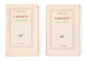 ALBERT CAMUS - 1913-1960 - Carnets [I] : mai 1935-février 1942. Carnets [II] : janvier 1942-mars 1951. Paris, Gallimard, 1962 et 1964. 2 vol. in-8 brochés, partiellement coupés.