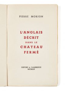 [ANDRÉ PIEYRE DE MANDIARGUES] - 1909-1991 - L’Anglais décrit dans le château fermé. Oxford & Cambridge, 1953. In-8 broché.