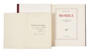 • Mobile : étude pour une représentation des États-Unis. Paris, Gallimard, 1962. In-4, box grenat, dos lisse, tête dorée, couverture et dos, étui (J-P Miguet).