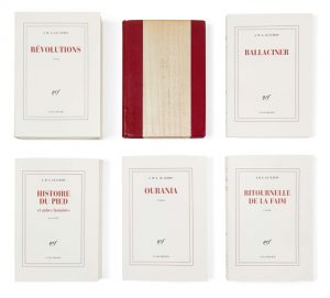 JEAN-MARIE GUSTAVE LE CLÉZIO - Né en 1940 - Réunion de 6 ouvrages en édition originale, dont 5 sur grands papiers. Paris, Gallimard, 1963-2008. Ens. 6 vol. in-8, l’un en demi-chagrin rouge à bandes, dos lisse, tête dorée, couverture et dos...