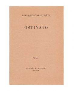 LOUIS-RENÉ DES FORÊTS - 1918-2000 - Ostinato. Paris, Mercure de France, 1997. In-8 broché, partiellement coupé.