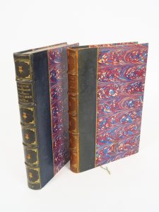 31- ARCHIVES DE LA SOCIETE FRANCAISE DES COLLECTIONNEURS D'EX-LIBRIS et de Reliures historiques. Paris, Au Siège de la société 1906, 1907, 1908, 1909. 4 années reliées en 2 vol. gd in-8. 1/2 chagr. Bleue, caissons dorés ornés de pts fleur....