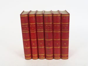 BUFFON. Œuvres complètes et extraits de Daubenton. Paris, société des publications illustrées, 1839. 6 vol. gd -in8, 1/2 basane rouge, dos lisse, filet doré. Nombreuses planches de Travies coloriées. Texte à deux colonnes (quelques rousseurs...