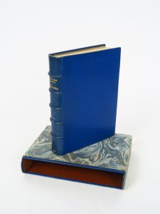FIRDOUSI (Abou'lkasim).?Histoire de Minoutchehr, selon le Livre des Rois, illustrée par Michel SIMONIDY.?Paris, Piazza 1919. in-8. Maroquin bleu, encadr. intérieur mosaïqué et doublé de soie brodée, étui bordé (Ch. Lanoe). Composition...