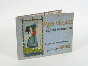 50- HANSI. Mon Village. Ceux qui n'oublient pas. Paris, Floury s.d. in-4 à l'italienne. Percaline bleue, ornée d'une composition en couleurs de l'éditeur. (Rel. éditeur). Couture lâche, traces de scotch à 2 pages