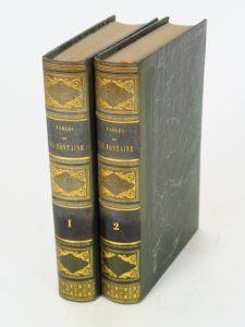 LA FONTAINE.?Fables.?Illustrées par Grandville.?Paris, Furne s.d. gd in-8. 1/2 veau vert, caissons ornés, pces de titre noires (Rel.?d'époque). Dos en partie éclairci.?Quelques pages brunies.?