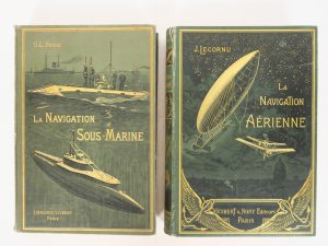 LECORNU (J.).?La Navigation aérienne.?Histoire documentaire et anecdotique.?Paris, Vuibert & Nony 1910. – La Navigation Sous-Marine.?Préface de M. Laubeuf.?Paris, Librairie Vuibert s.d. 2 vol. gd in-8. Percalines vertes, belles compositions...