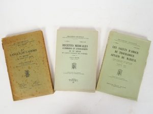 LITTÉRATURE OCCITANE. DOBELMANN (Suzanne). La langue de Cahors des origines à la fin du XVIème. Toulouse, Privat 1944. (couv. Piquée). - BRUNEL (Victor). Recettes médicales, alchimiques et astrologiques du Xvème en langue vulgaire des...