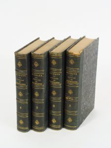 69- MICHAUD. Histoire des croisades. Nouvelle édition augmentée d'un appendice par Huillard Bréholles. Paris, Furne 1862. 4 vol. in-8. 1/2 chagrin vert, fil et fleur dor. (Rel. de l'époque). Angle d'une coiffe arrachée