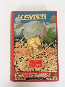 VERNE. L'île à hélice. Paris, Hetzel, s.d [catalogue D], percaline rouge, plats à la mappemonde et au portrait collé