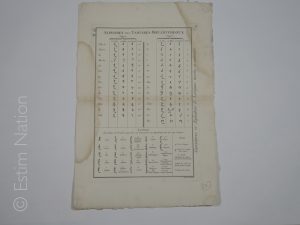 Planche, format 30 x 47 cm,représentant l'alphabet tartare mouantcheoux,non daté mais époque XVIIIe siècle,quelques mouillures claires,sinon en bon état.