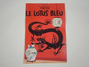 Gravure en couleurs,format 41 x 59 cm,''Le lotus bleu'',fin XXe siècle,légers défauts en marge.