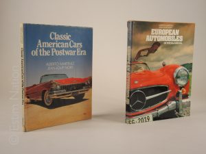 Réunion de deux ouvrages contemporains.1: classic american cars of the post war era.2: european automobiles of the 50s and 60s.Très bon état.